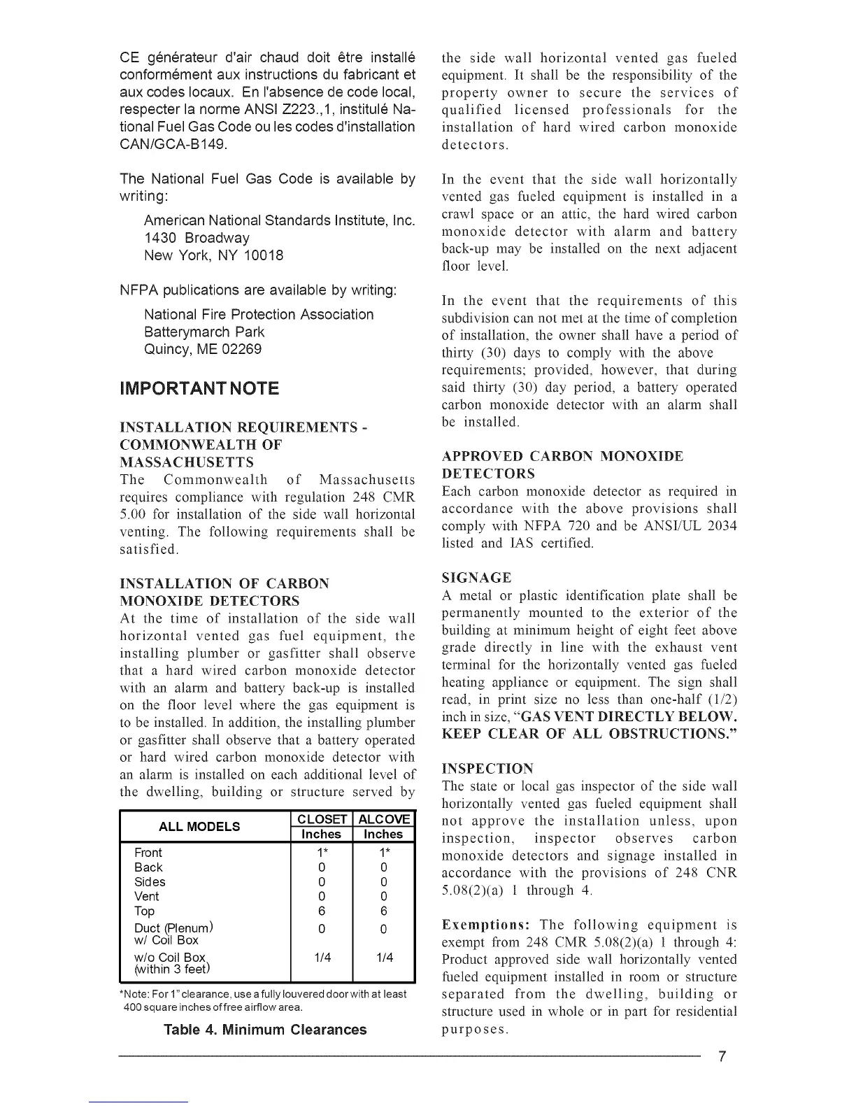 Table 4. Minimum Clearances