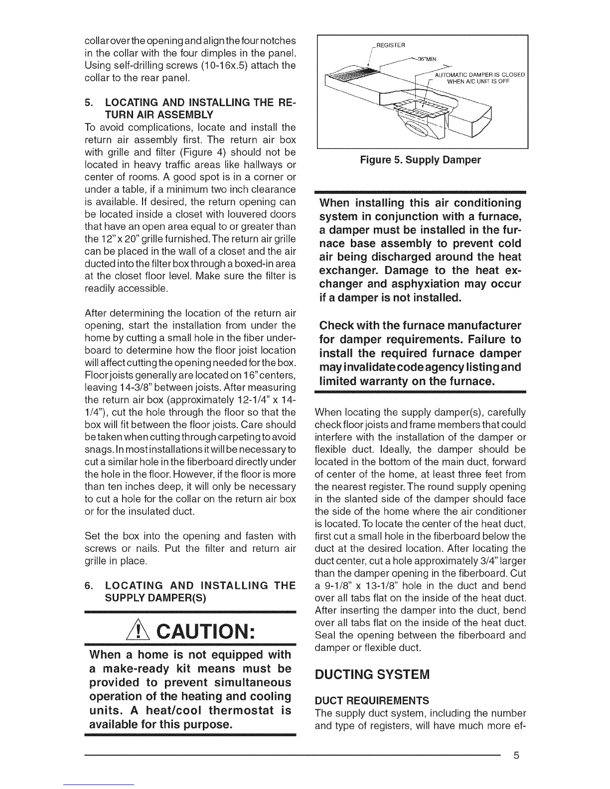 for damper requirements. Failure to