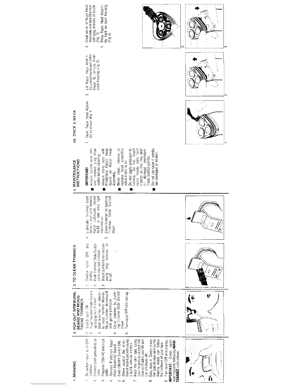 Norelco 725RL - Shaving Operation; Preparing for Shaving; Shaving Technique and Pressure; Post-Shave Steps and Reminder