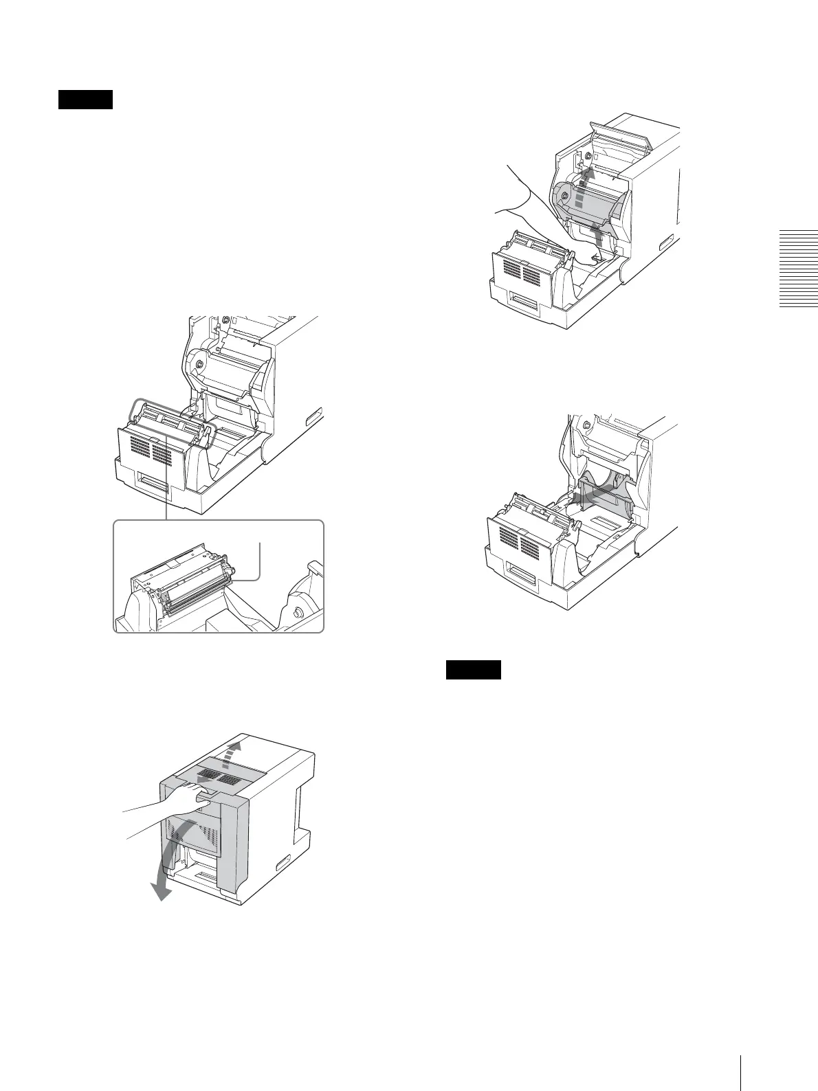 ・ プリント終了直後は、サーマルヘッドが高温になってい