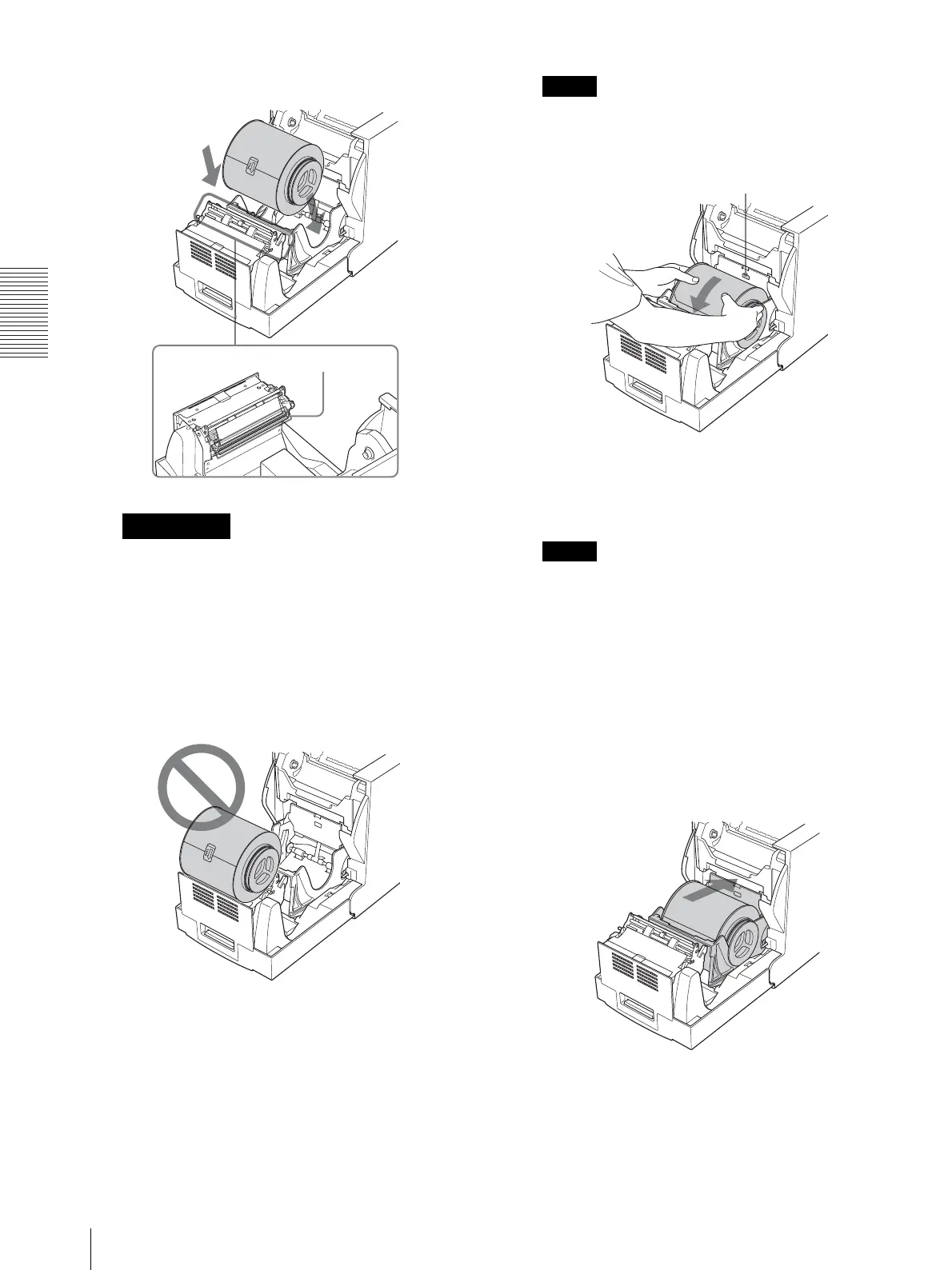 • No coloque el rollo de papel en ningún otro lugar