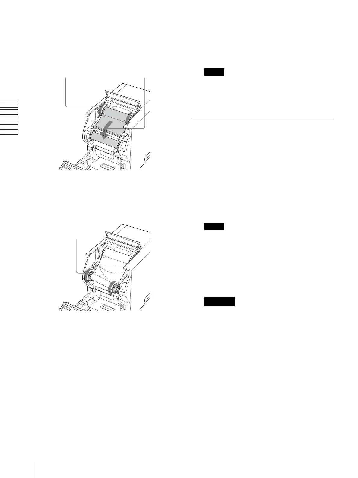 nastro di inchiostro e il rullo di carta, quindi caricare un