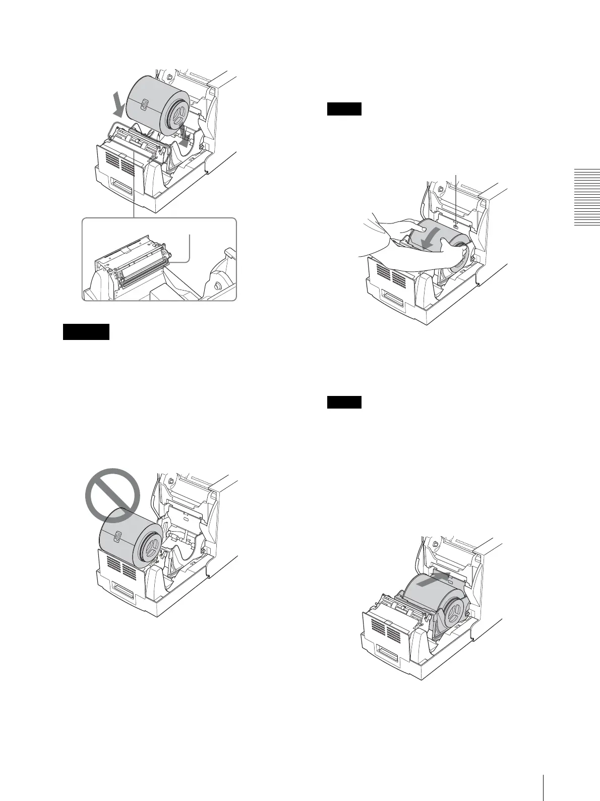 • Do not place the paper roll on any part of the