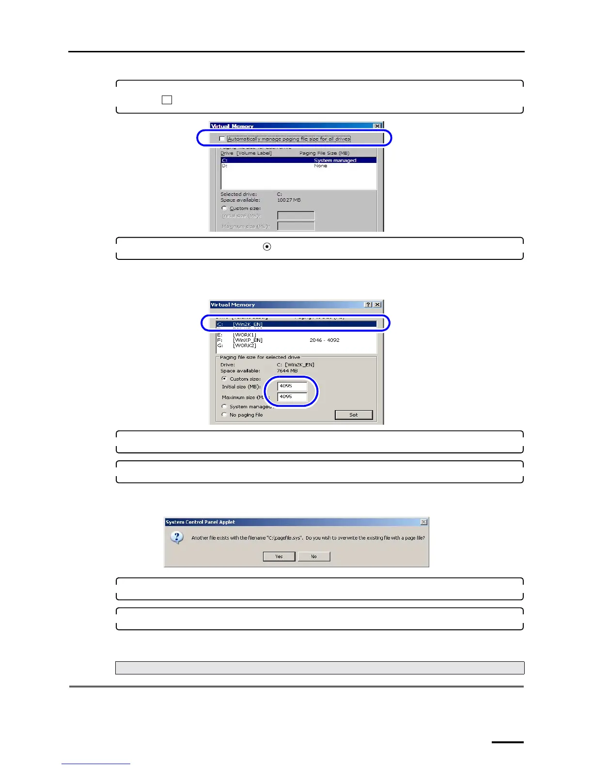 4. For Windows Vista, clear the Automatically manage paging file size for all drives check