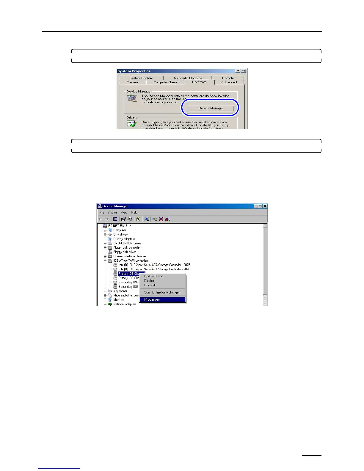 Double-click IDE ATA/ATAPI controllers on the Device Manager display. → Right-click Primary IDE