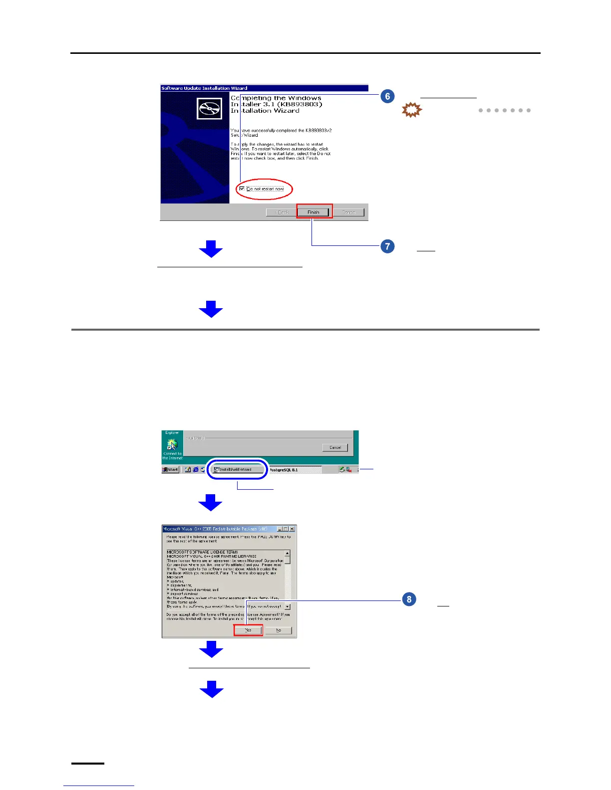 If the installation display for the Microsoft Visual C++ 2005 SP1 Redistributable is not shown, go to ☞5.4 Installing the