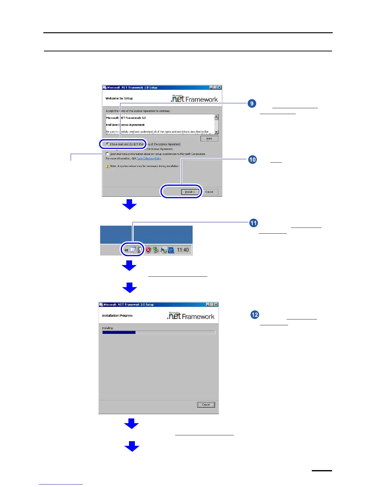 If the installation display for the Microsoft .NET Framework Version 3.0 is not shown, go to ☞5.5 Installing the