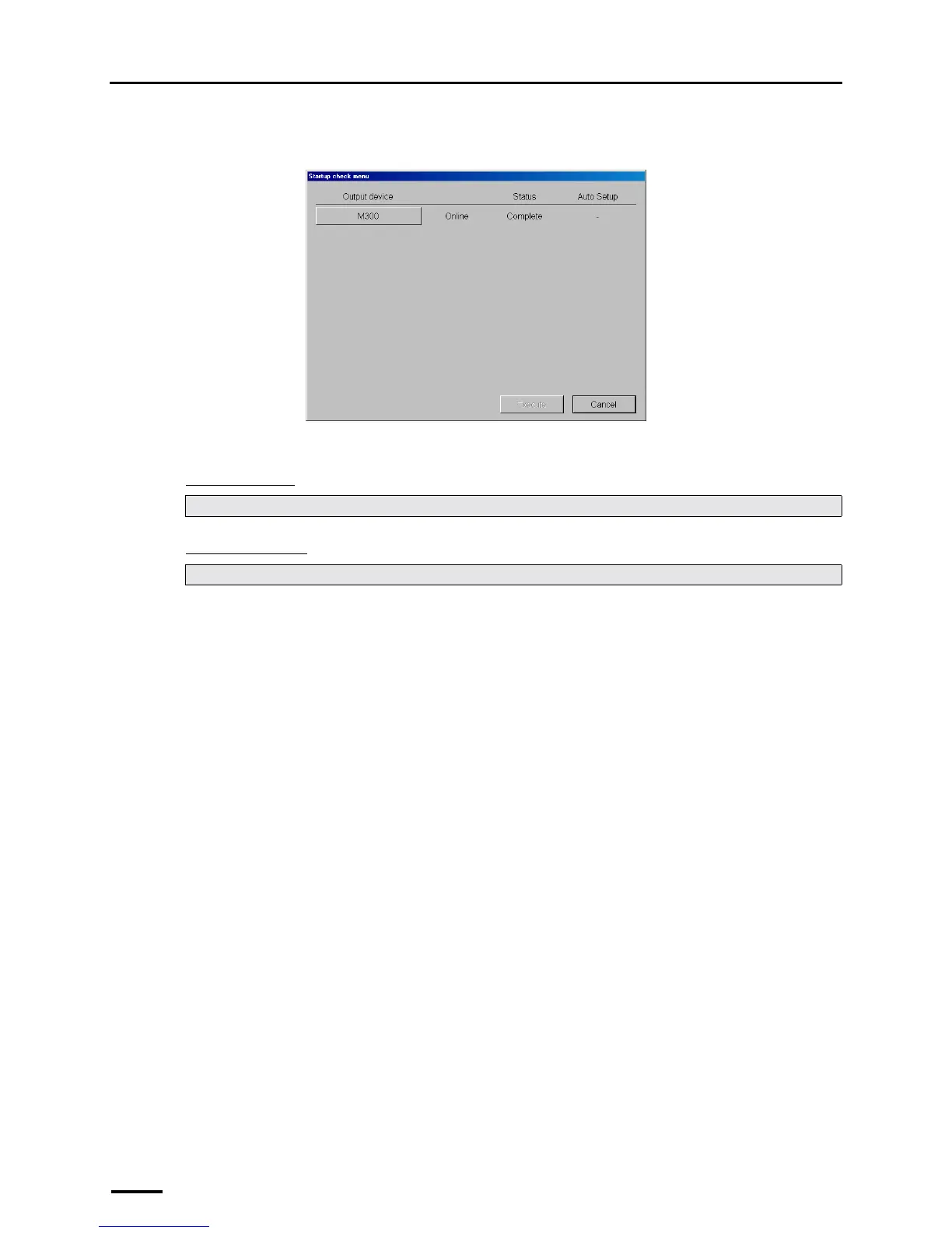 If connecting the scanner to the PC on which the controller is installed, the Startup check menu display is shown.