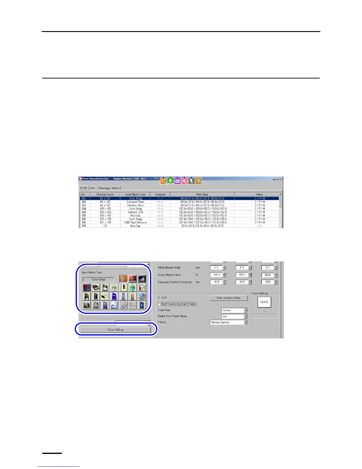 For details of the print channel, see the Operator's Manual Creating Print Channel in Various Settings.