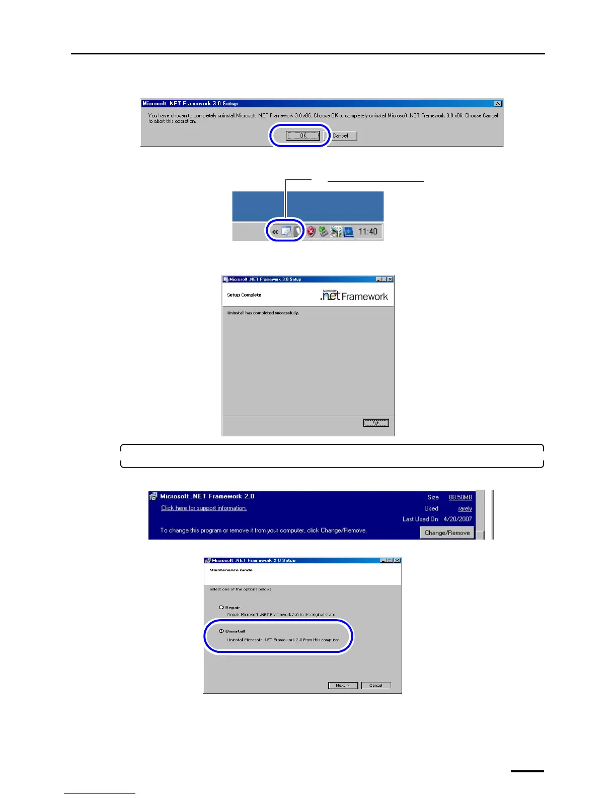 Double-click the Microsoft .NET Framework 3.0 icon on the taskbar at the lower-right of the screen.