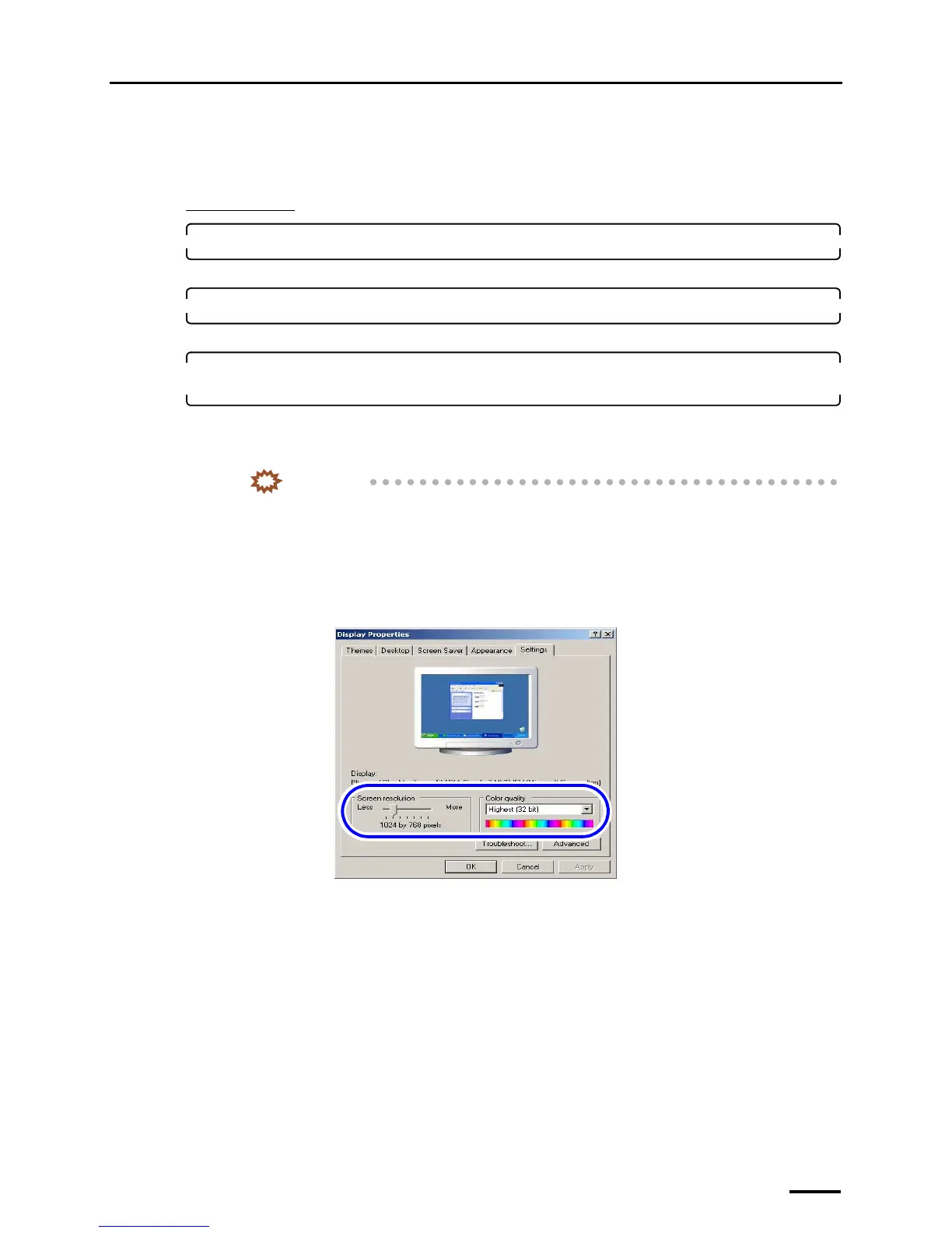 • Confirm the recommended resolution in the Operator's Manual of the monitor.
