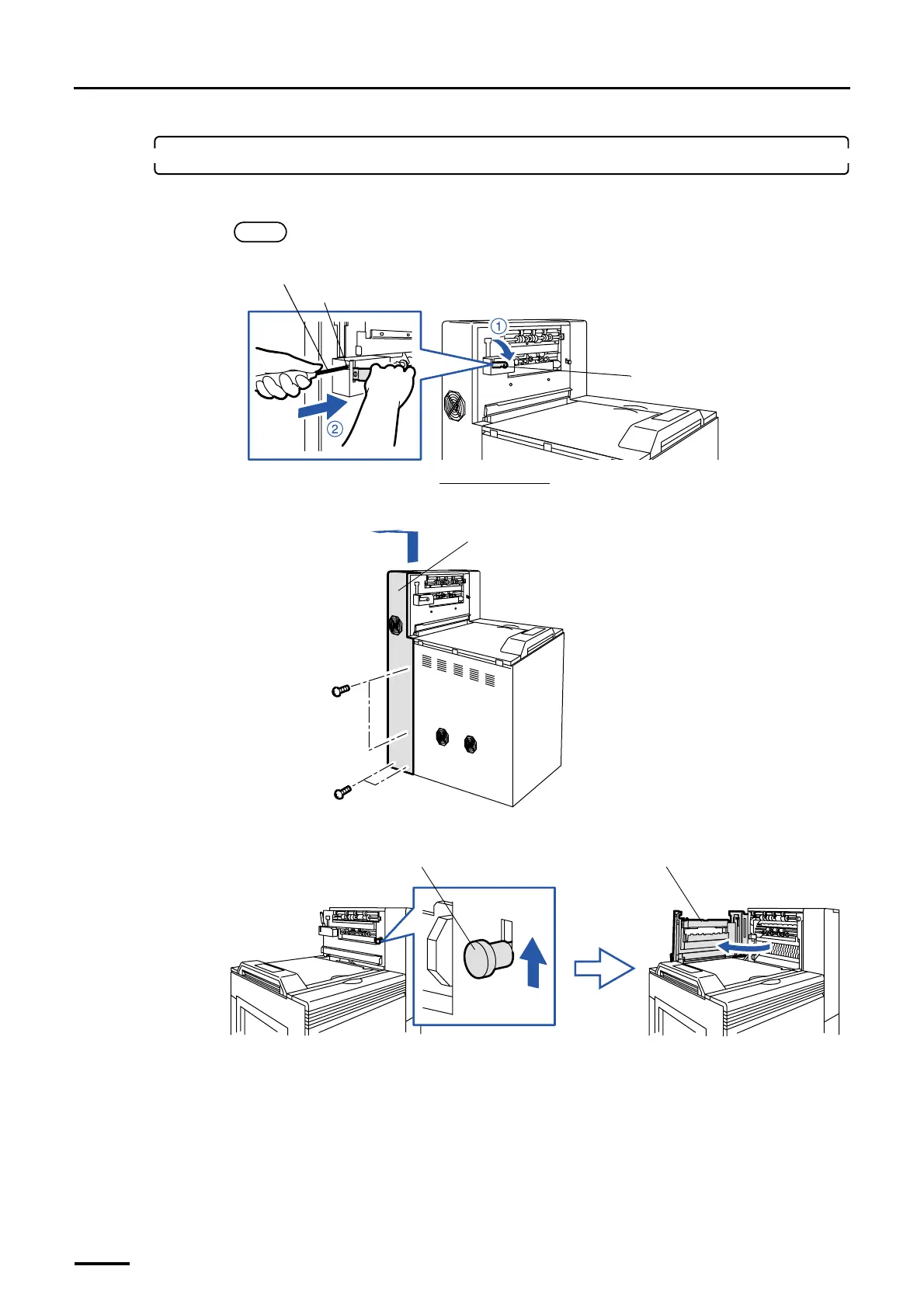 (1) Lower conveyor stay 2 and insert the philips blade screwdriver (large) to the square hole.