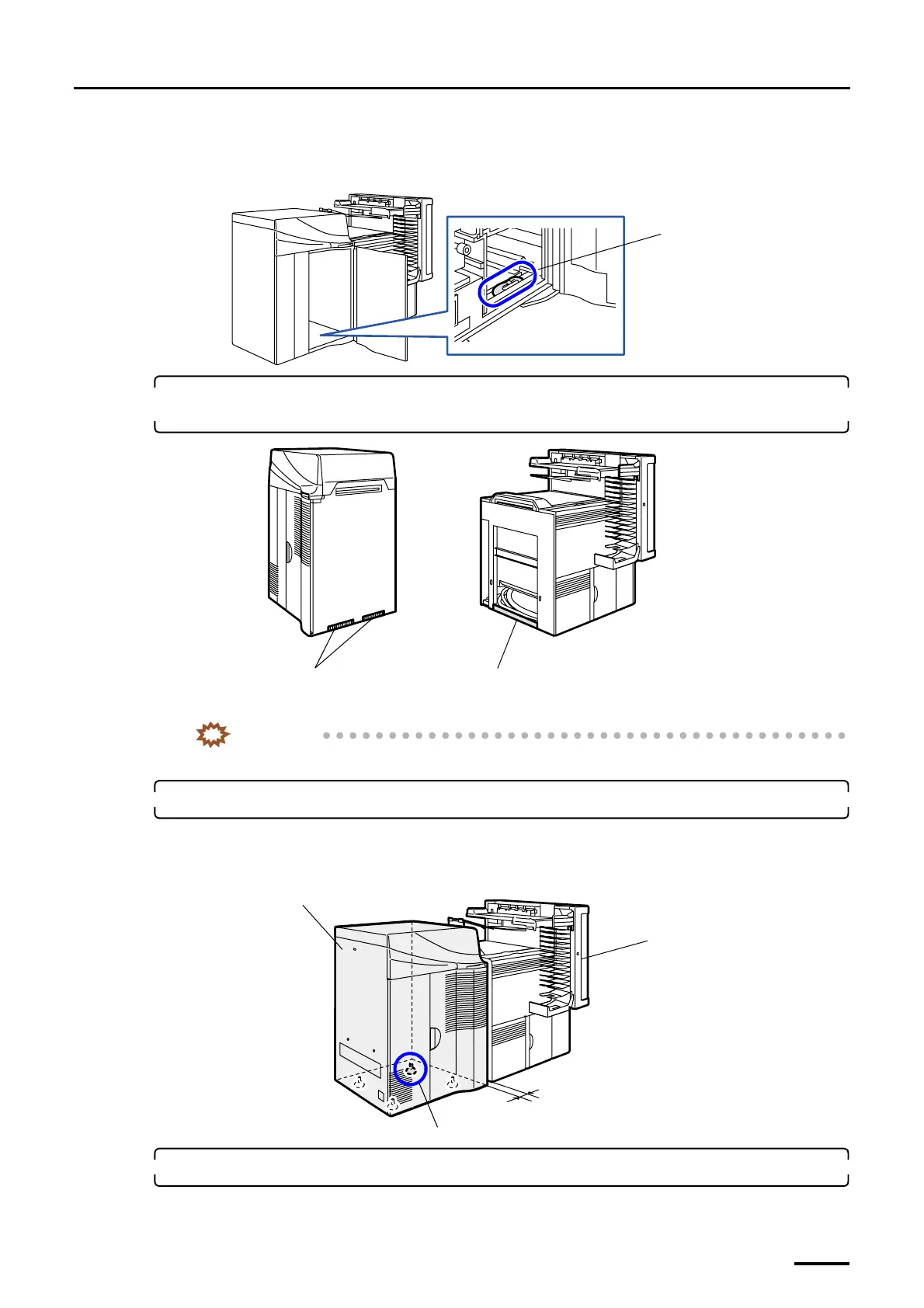 If there is not enough space at the back of printer, lower the jack bolt of part A to the castor movable position in
