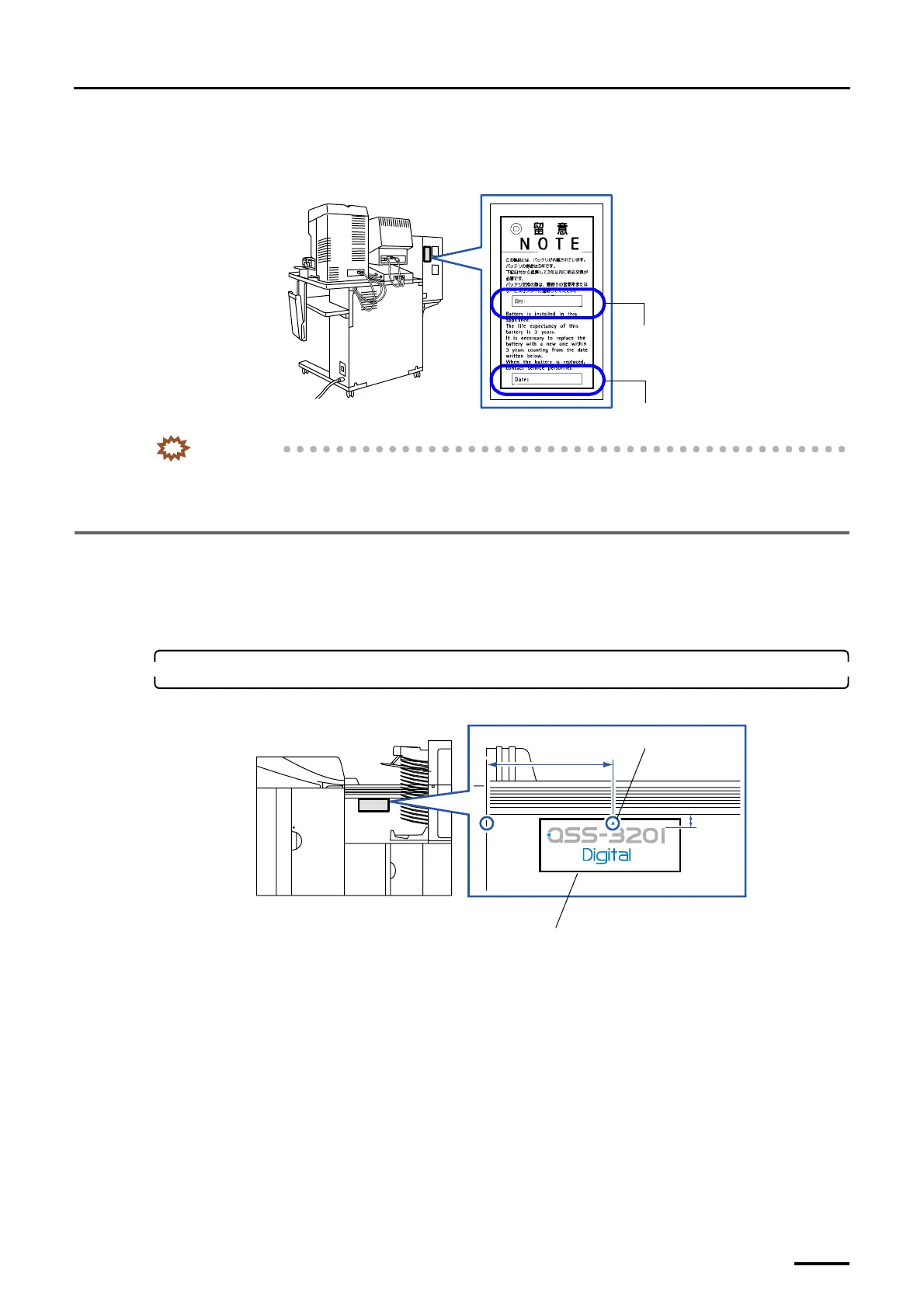 • When installing the machine, explain to the customers that the battery should be replaced with a new one