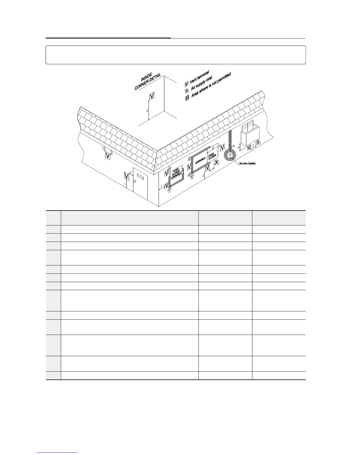 B Clearance to window or door that may be opened 12 in (30 cm) 36 in (91 cm)