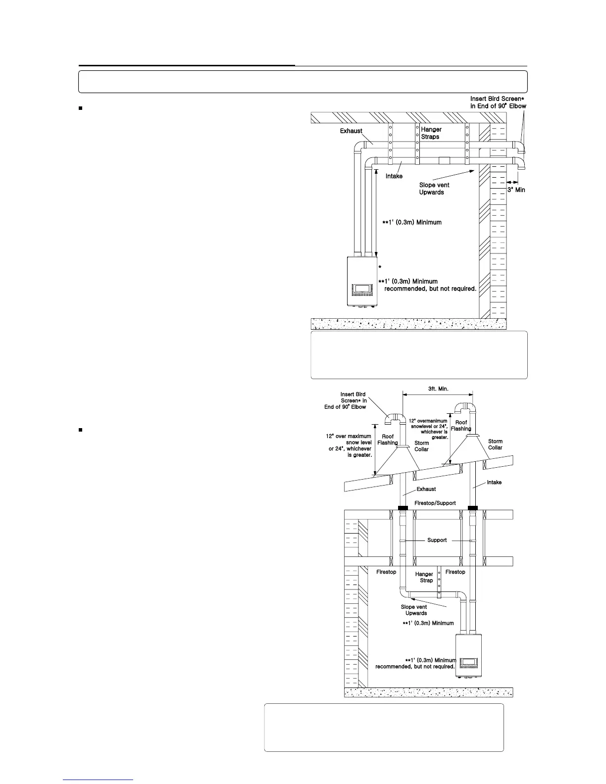 • Slope the horizontal vent 1/4" upwards for every 12" (300mm)
