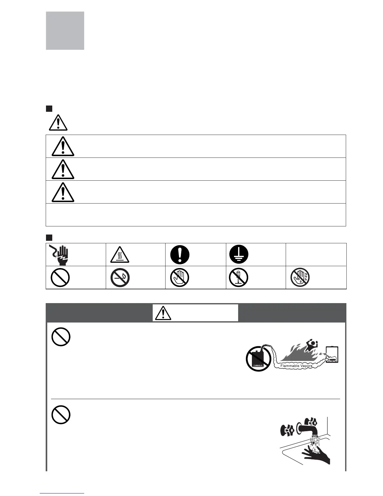 To prevent damage to property and injury to the user, the icons shown below will be used to warn of