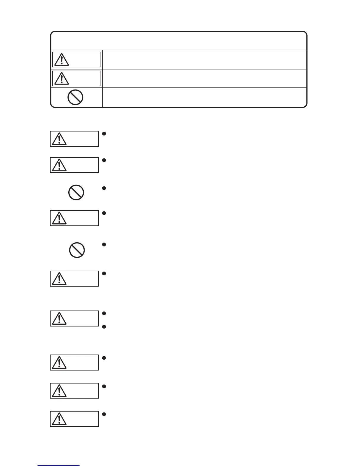 To prevent damage to property and injury to the user, the icons below warn of