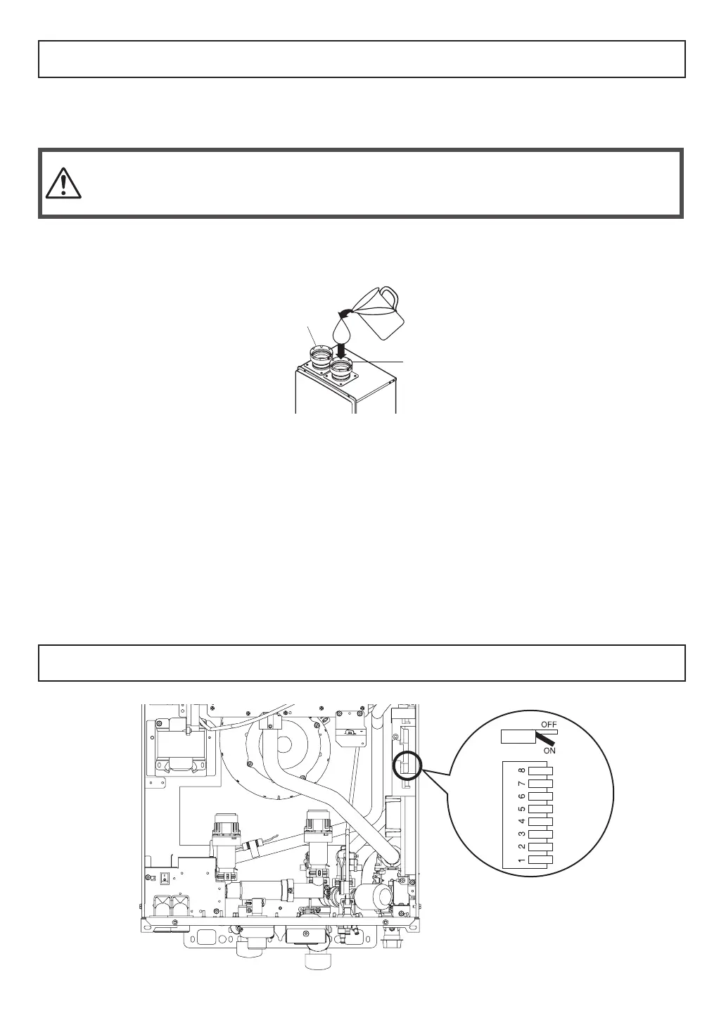 Filling the condensate container before vent pipe installation.