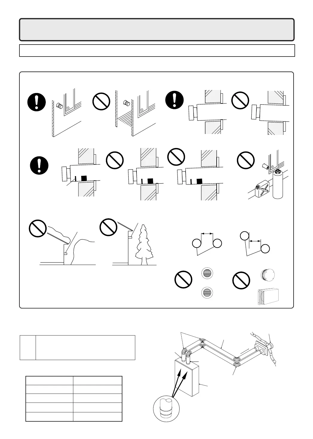• Do not install the vent terminal indoors • Install the vent terminal with a downward slope