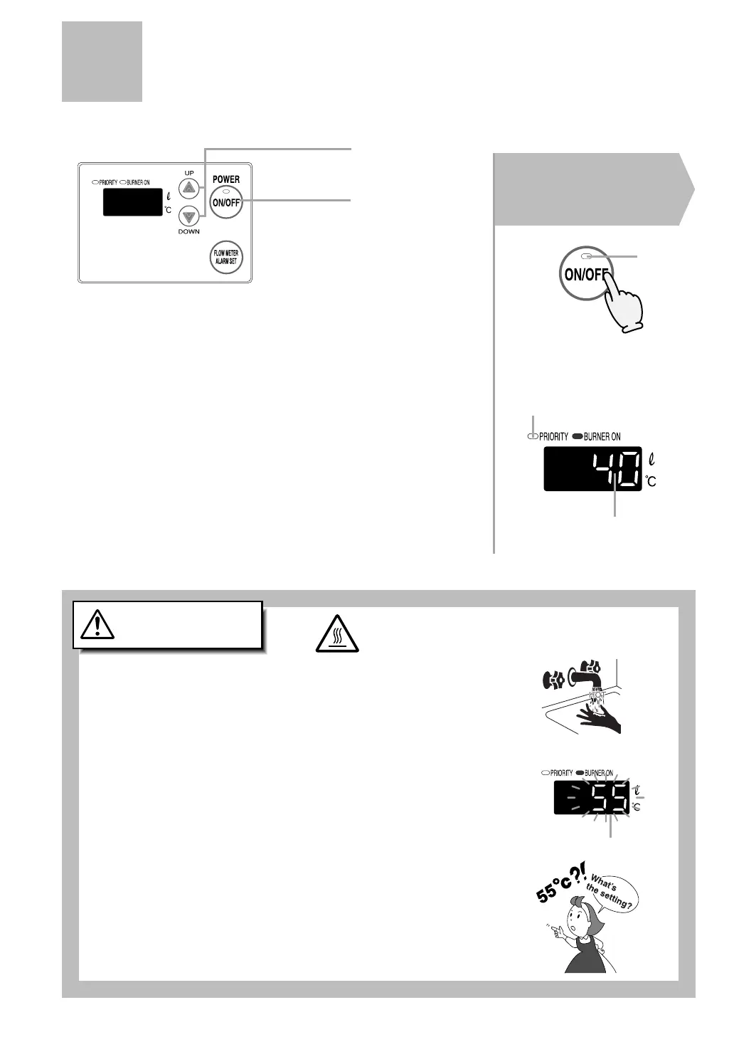 • Do not allow anyone to change the water temperature while hot