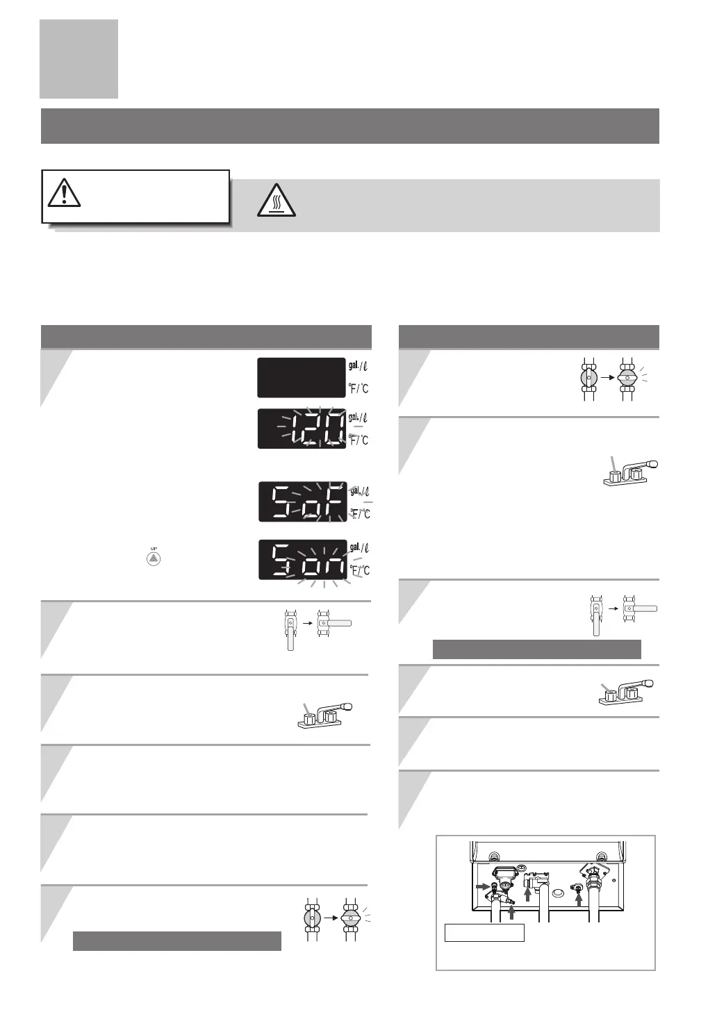 water completely from the water heater. Then use an air compressor to remove all water from inside the unit's water piping.