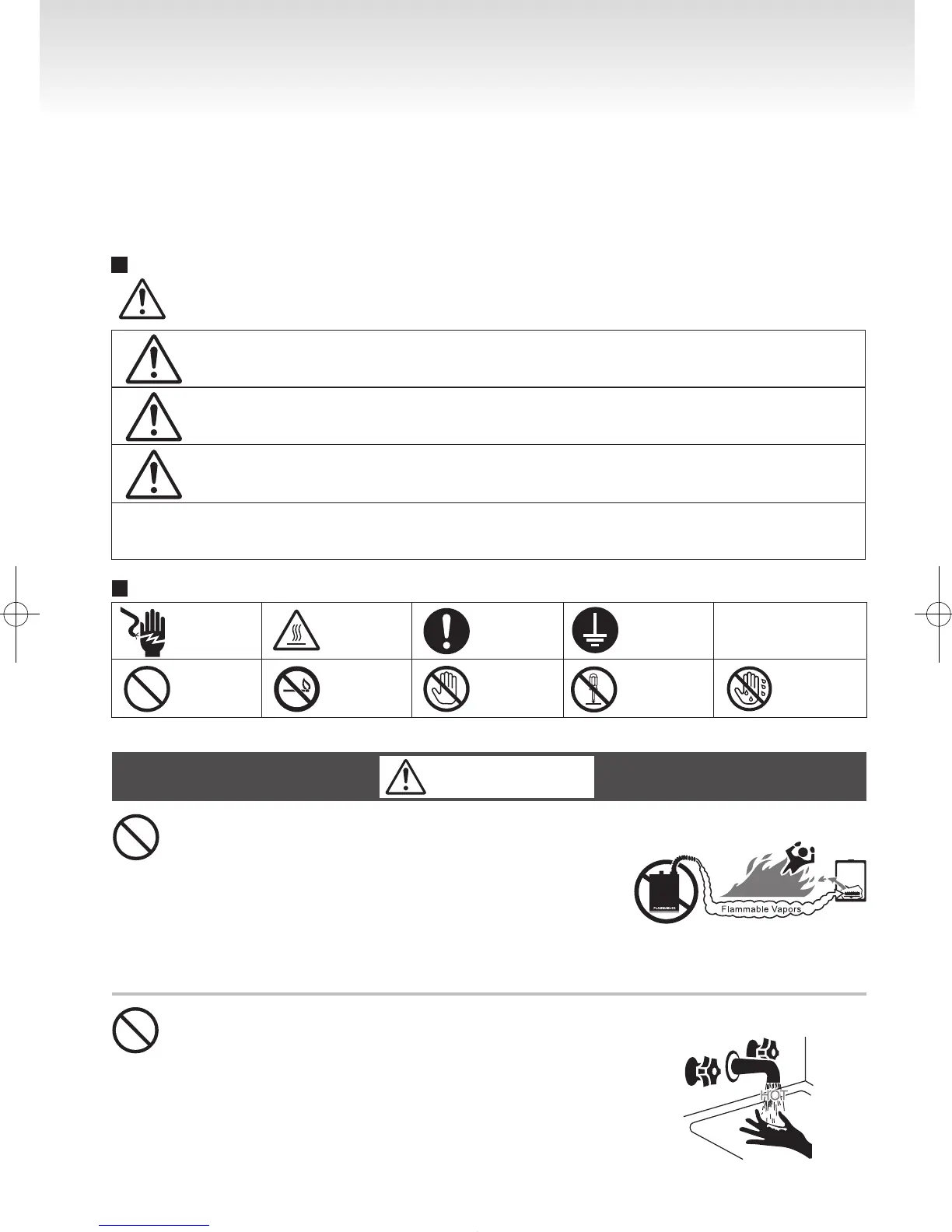 To prevent damage to property and injury to the user, the icons shown below will be used to warn of