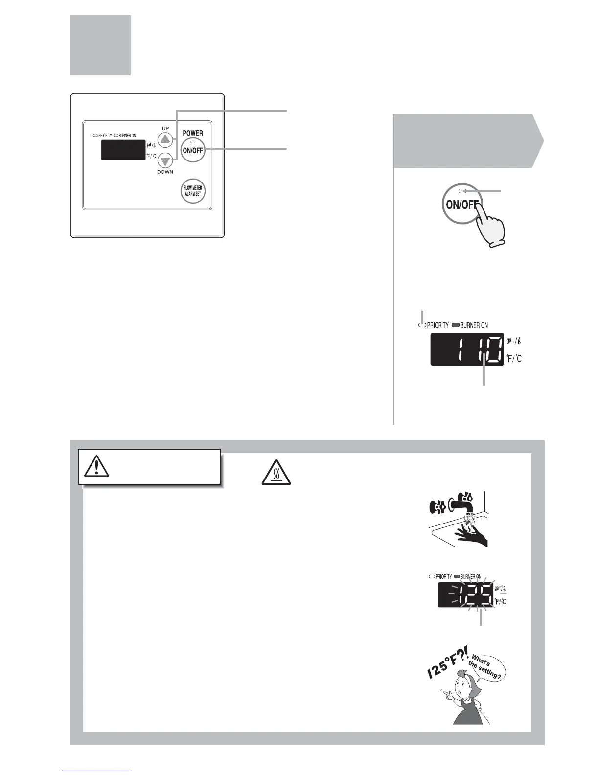 • When setting the unit to 125°F / 55°C (131°F) or higher, the