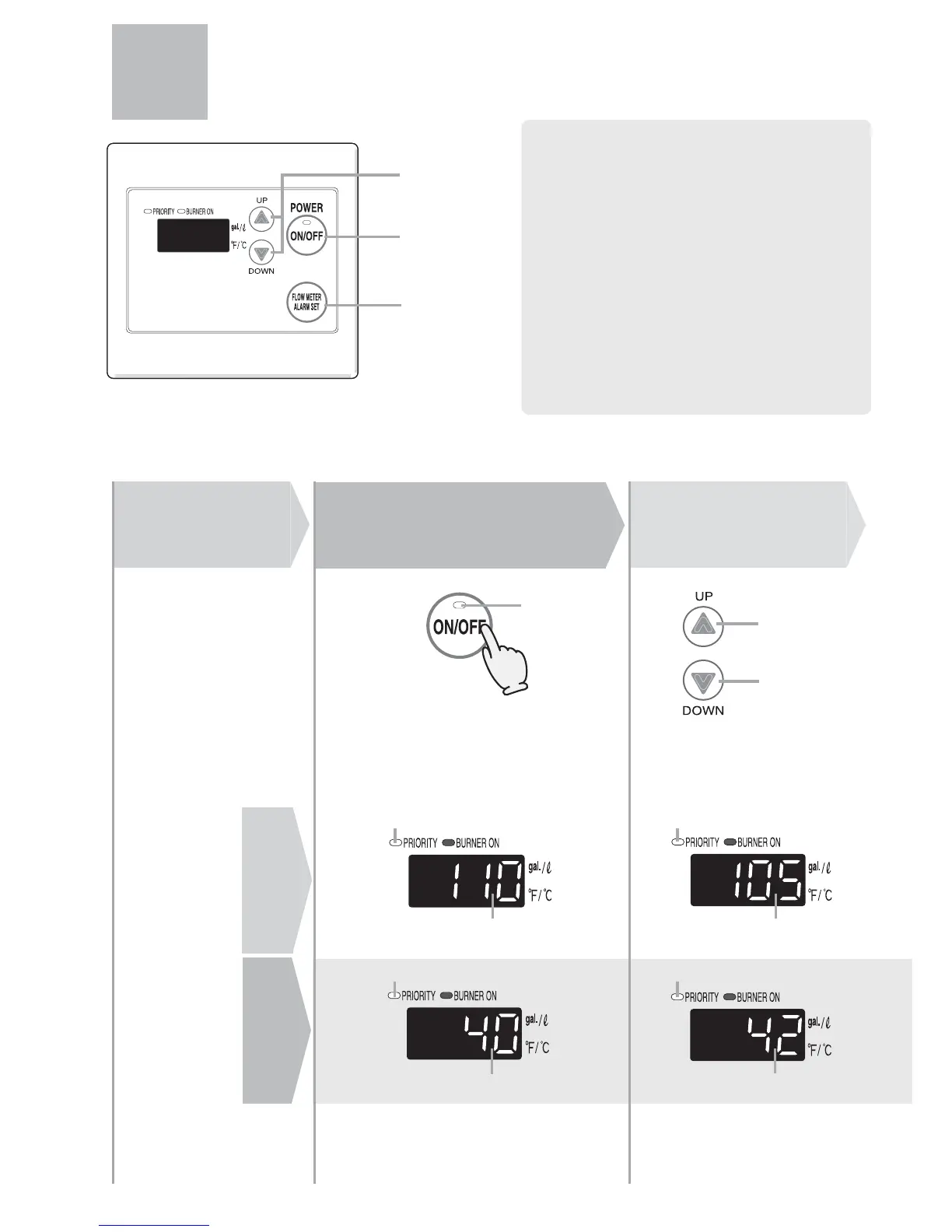 Previous set temperature (example:110°F)
