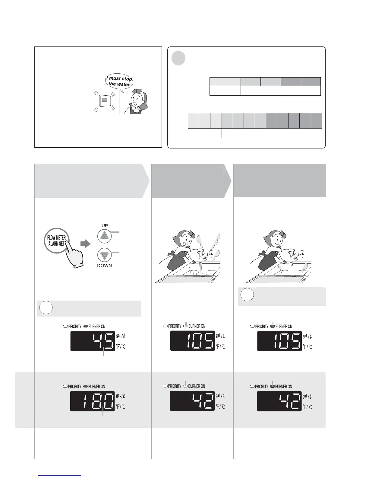 Press the flow meter alarm set button