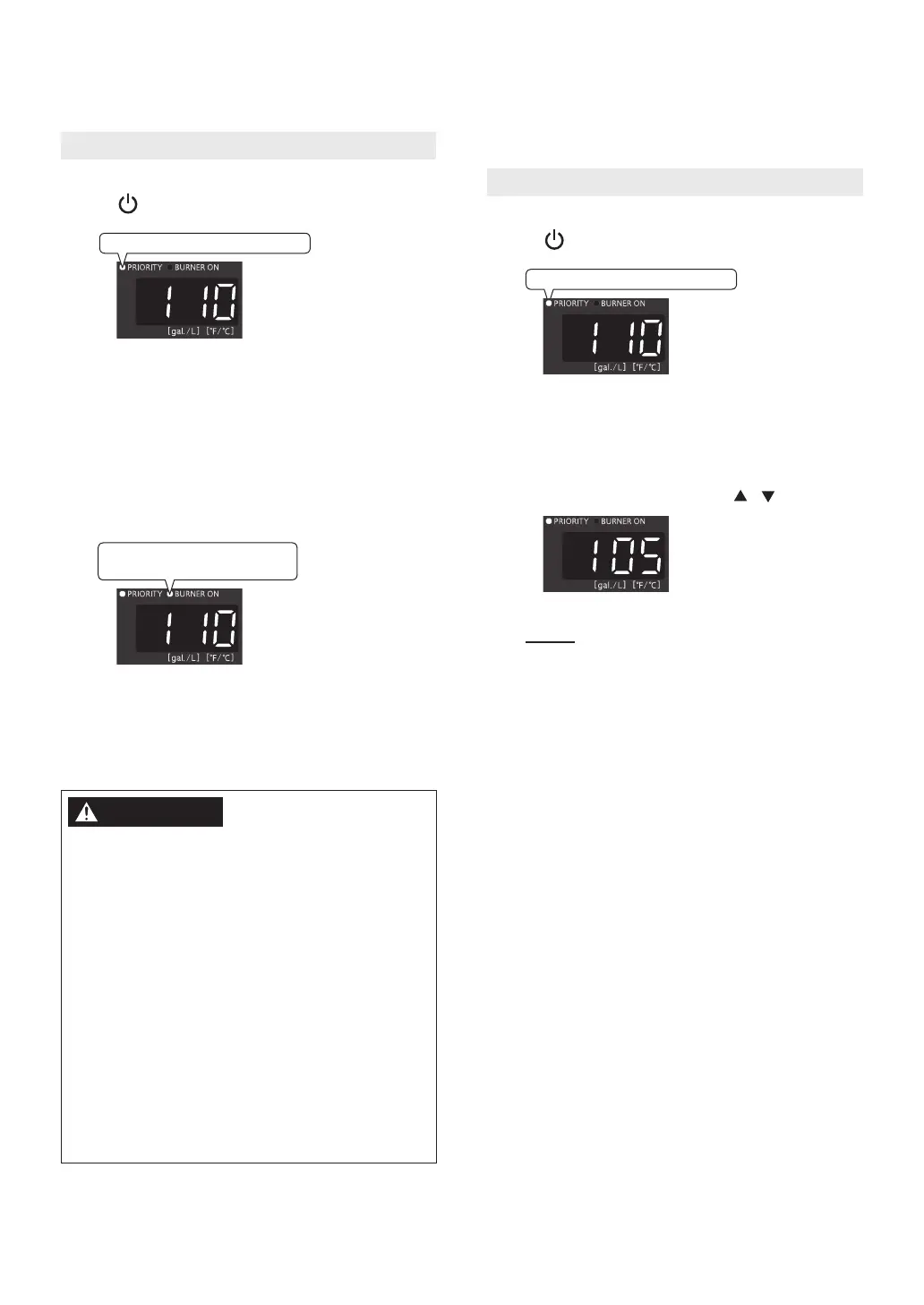 • Turn off hot water, the BURNER ON indicater