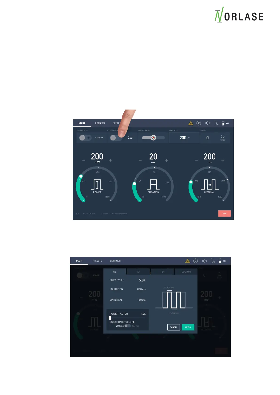 3. Select the desired Duty Cycle Tab. The Duty Cycle is preset at 5%, 10%, 15% or