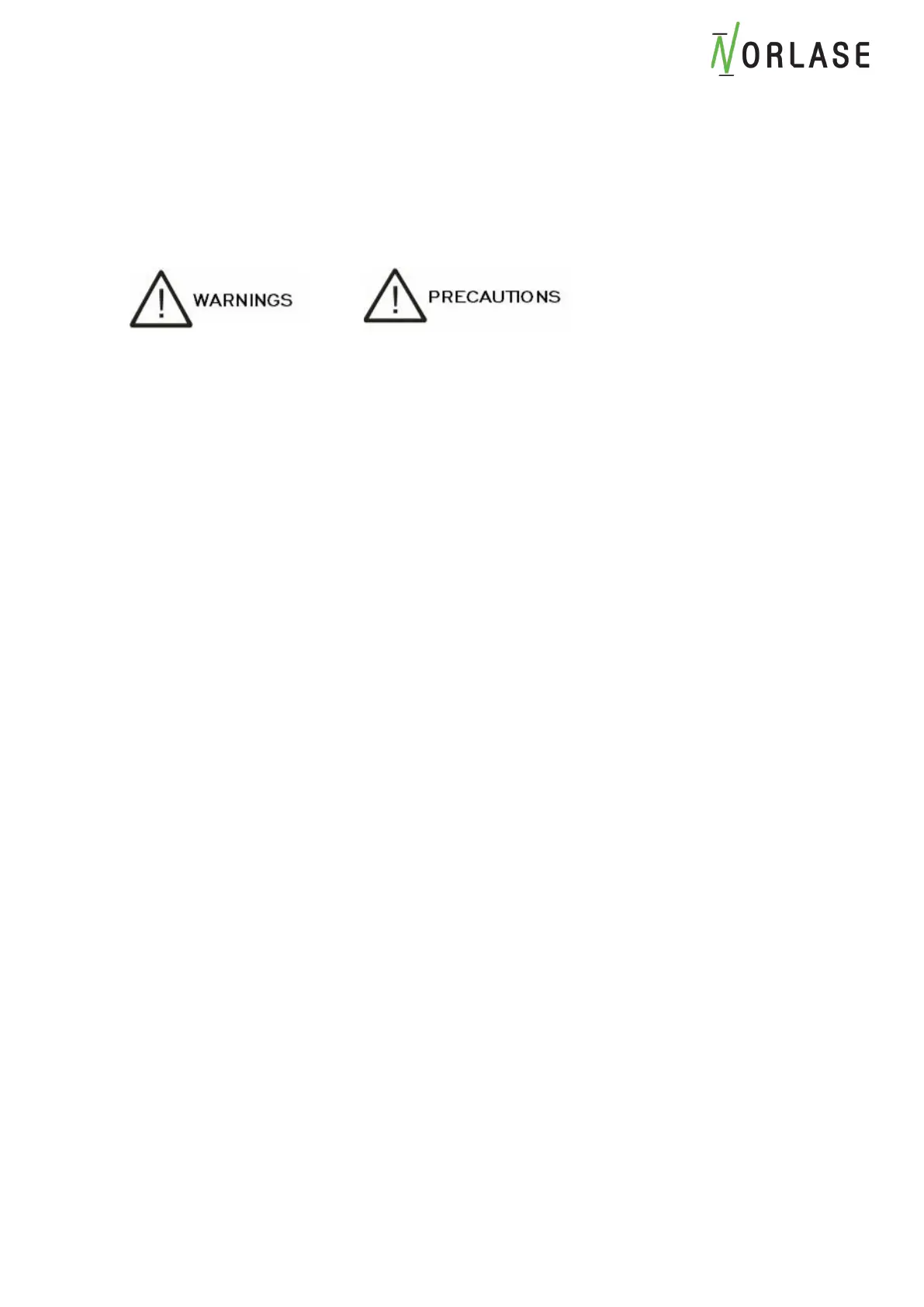 • Only Norlase trained service personnel are allowed to adjust or service the