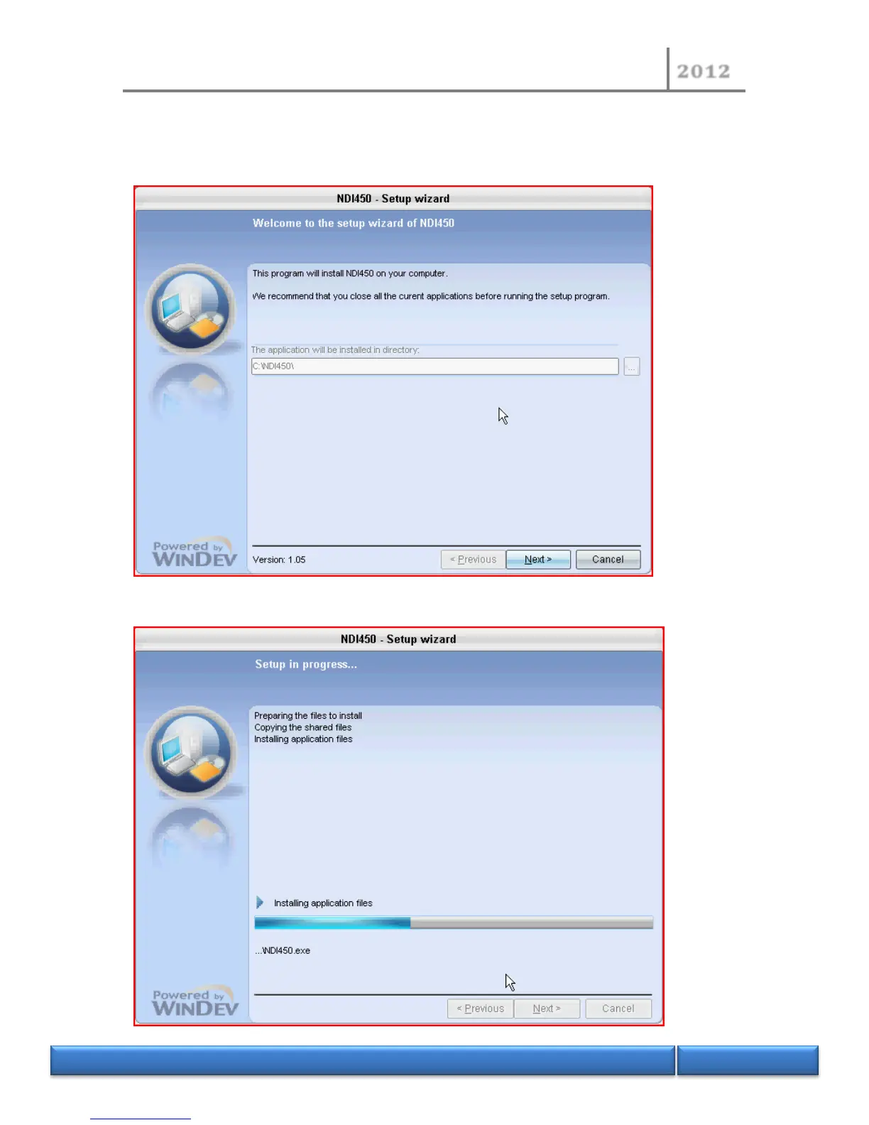 abort with “Cancel” button, the NDI450 software does not restart and it will be necessary to