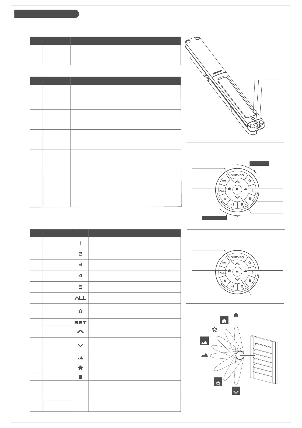 Hold down for 1 second: Max Upward Tilt (Fully closed)