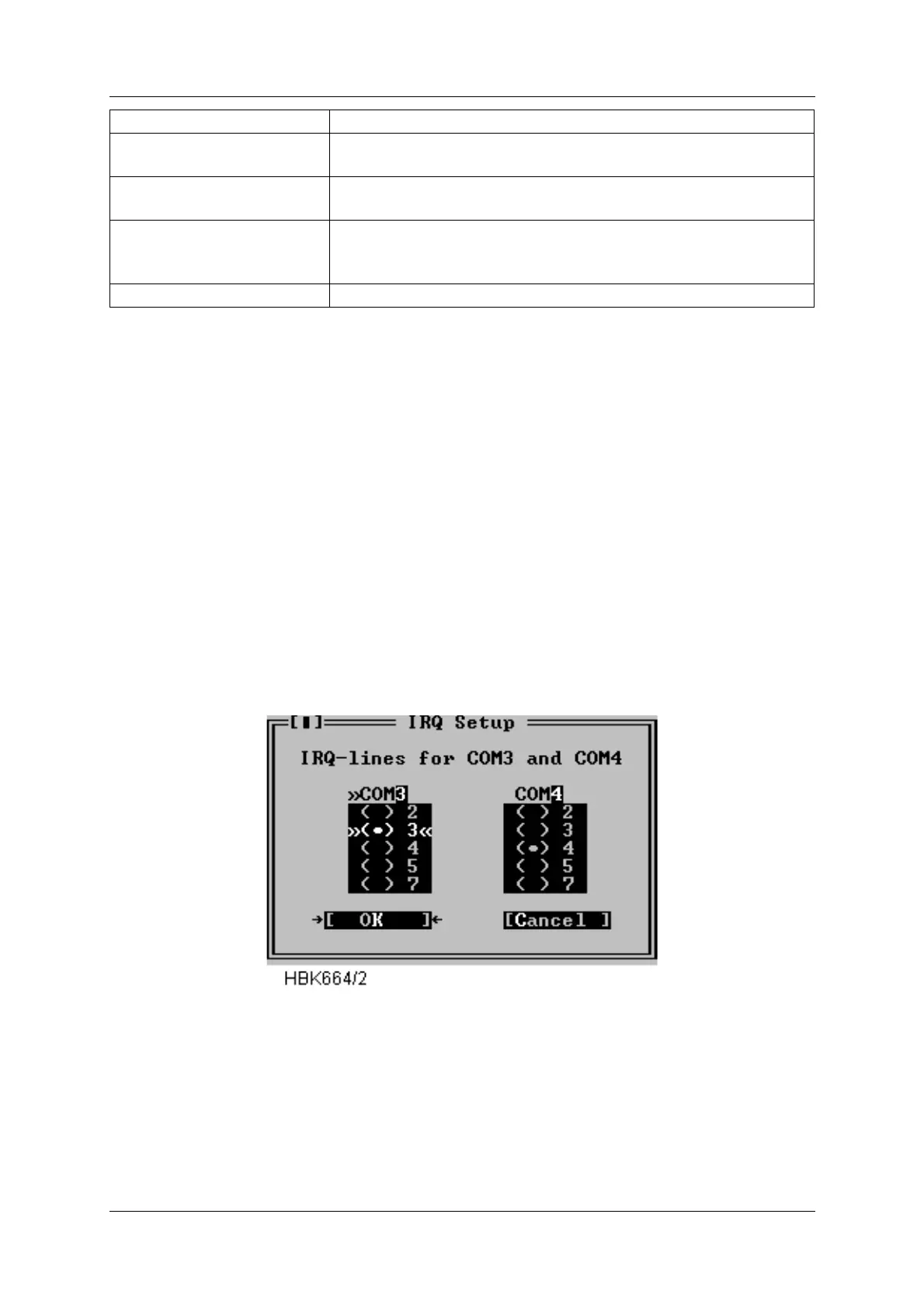 This dialog allows alternate IRQ selections for COM3 and COM4.