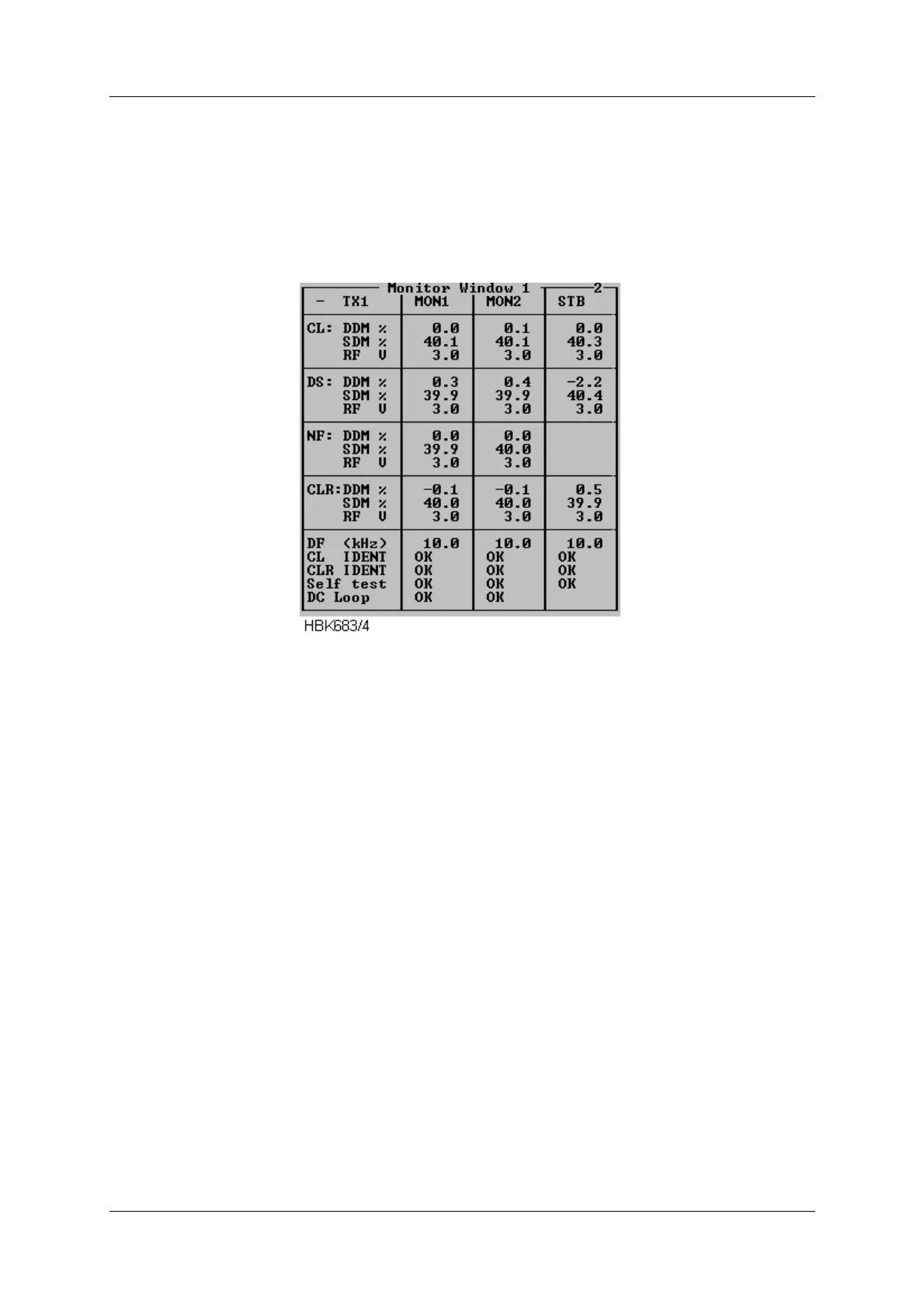 Window 1 menu item. This window displays the standard monitor parameters (DDM, SDM