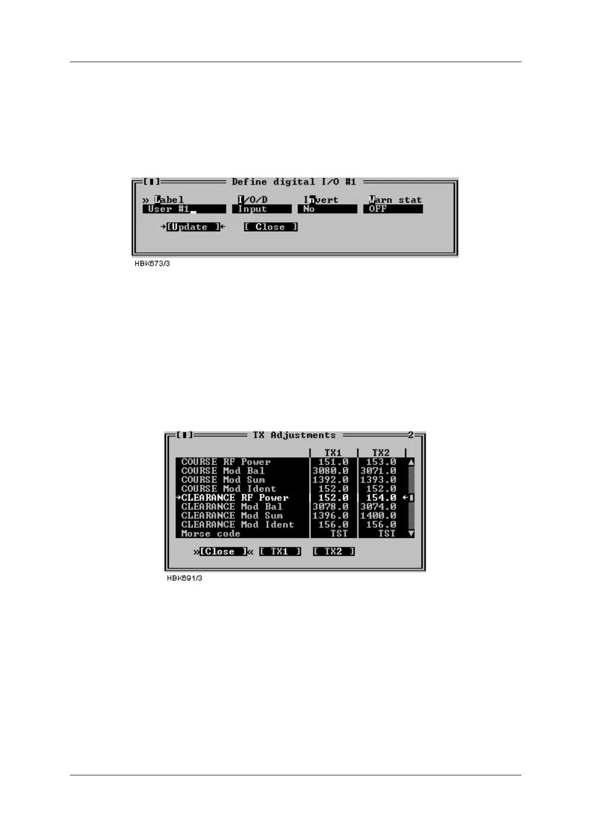 The following TX parameters can be changed for Course and Clearance (2-freq. systems) for