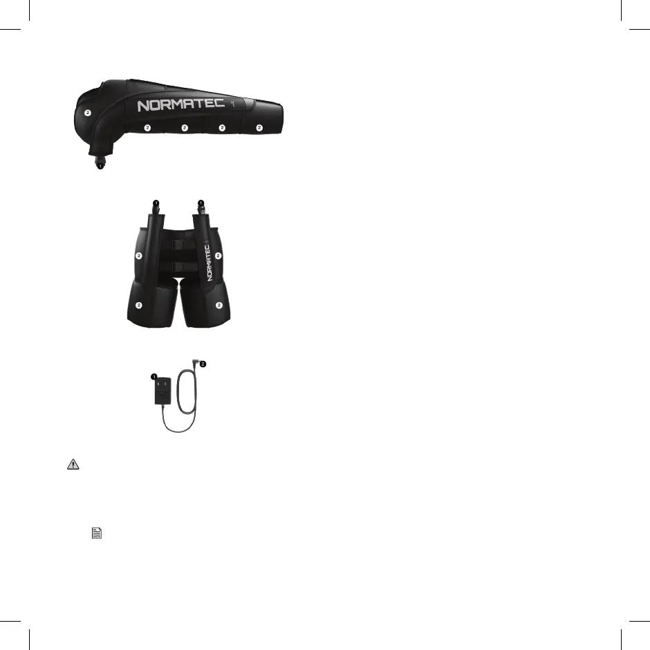 conectată la unitatea de control Normatec 2.0 Pro și la o priză electrică.