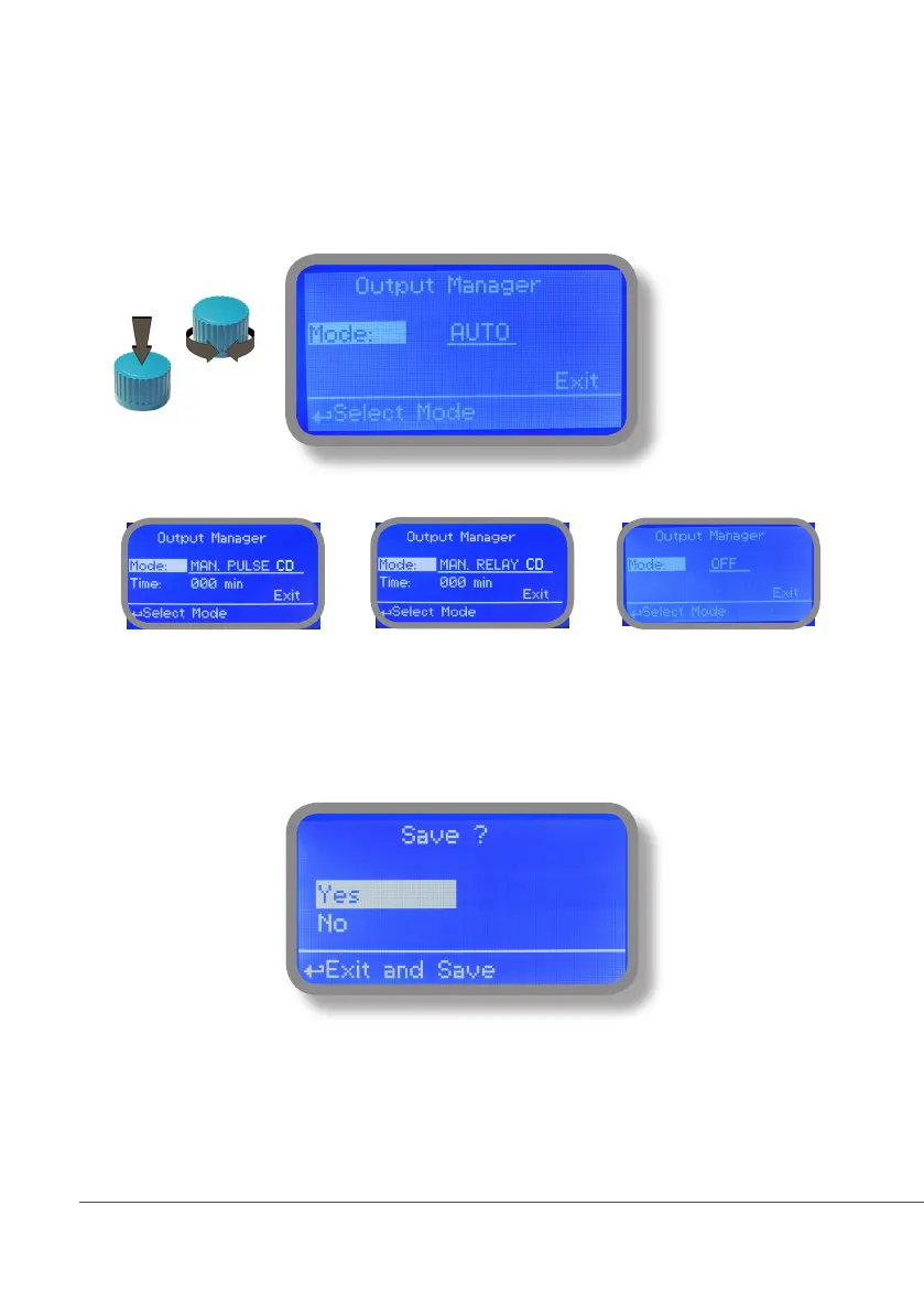 Choose “YES” to save changes. Exit from main menu. Main display will show a countdown for selected output.
