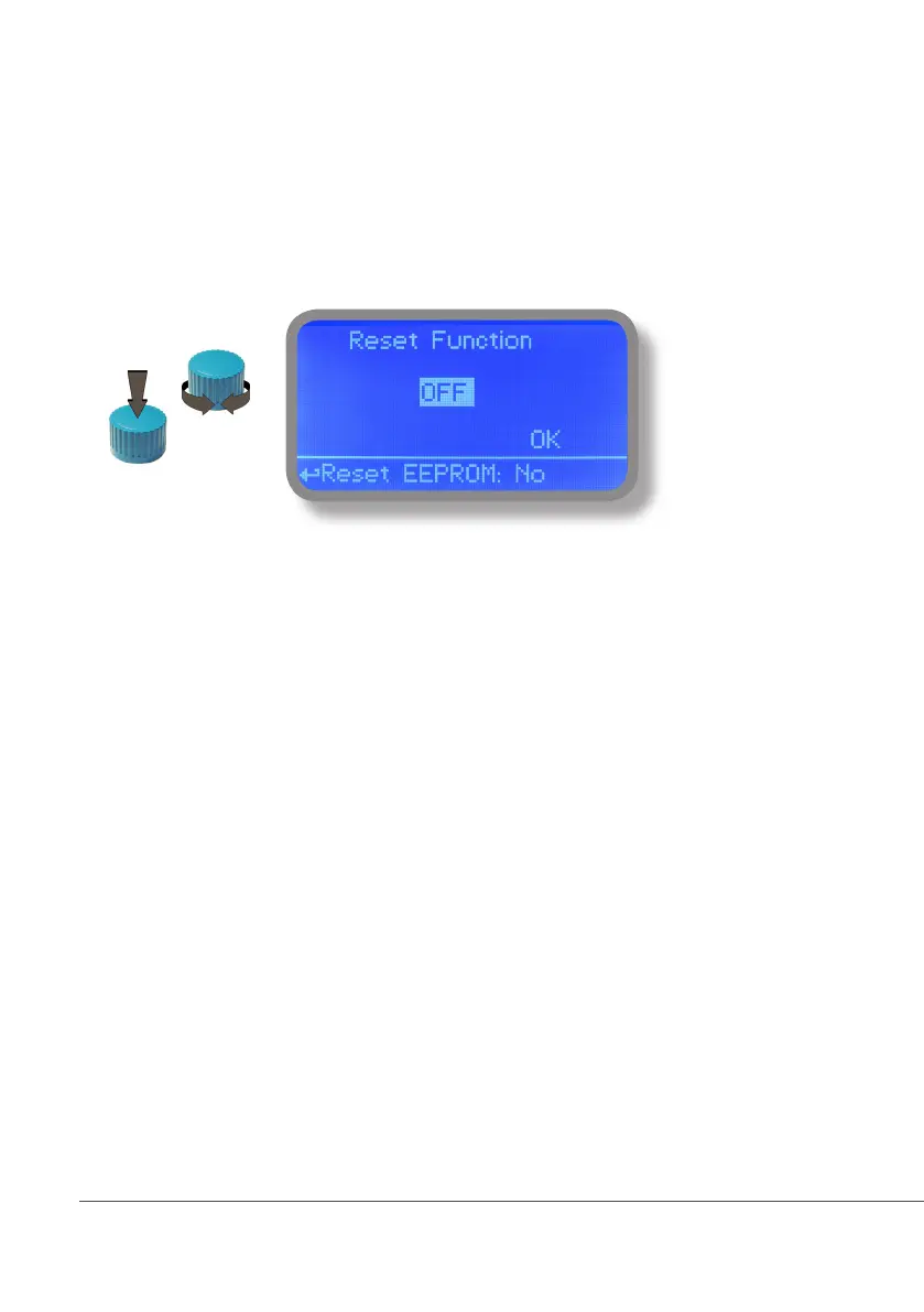 To restore instrument to its default values (including password) once into “Instrument Reset” menu, press wheel