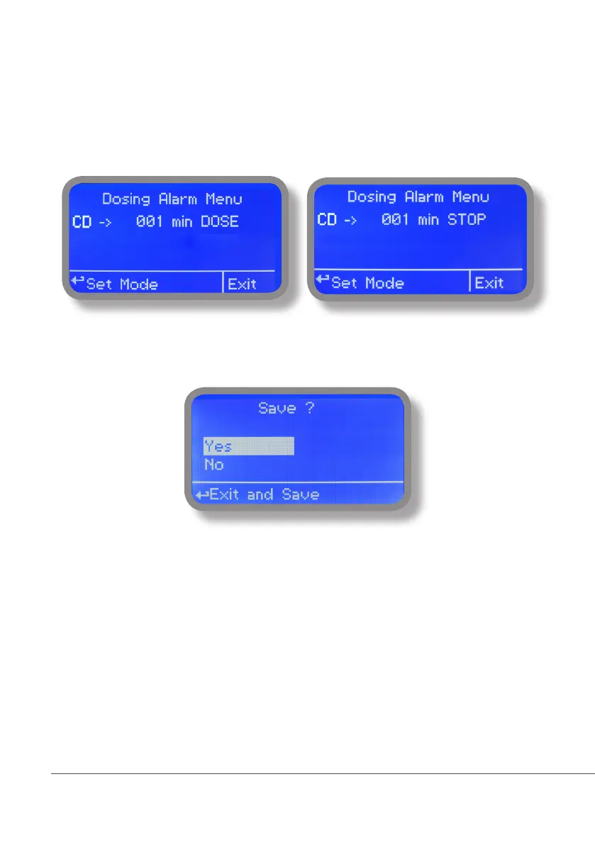 disabled selecting “OFF” instead of a number (minutes). Dosing alarm can be set for both or just one pump.