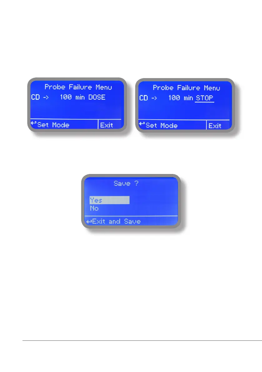 is possible to STOP pumps or just to show an alarm message (probe failure) . Function can be disabled selecting