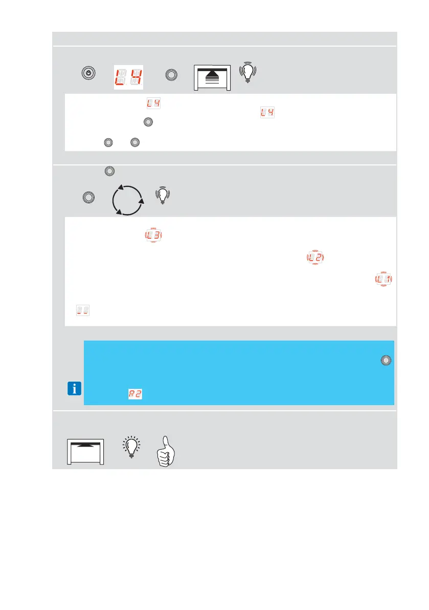 • The automation opens automatically as far as the open position. The display flashes .