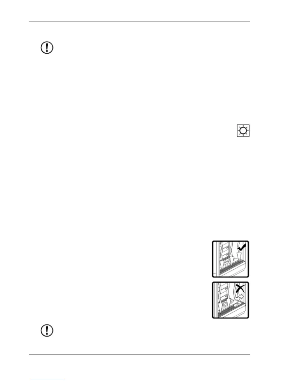 og de må heller ikke stikke ut over den fremre kanten av hyllene. Feil fylling