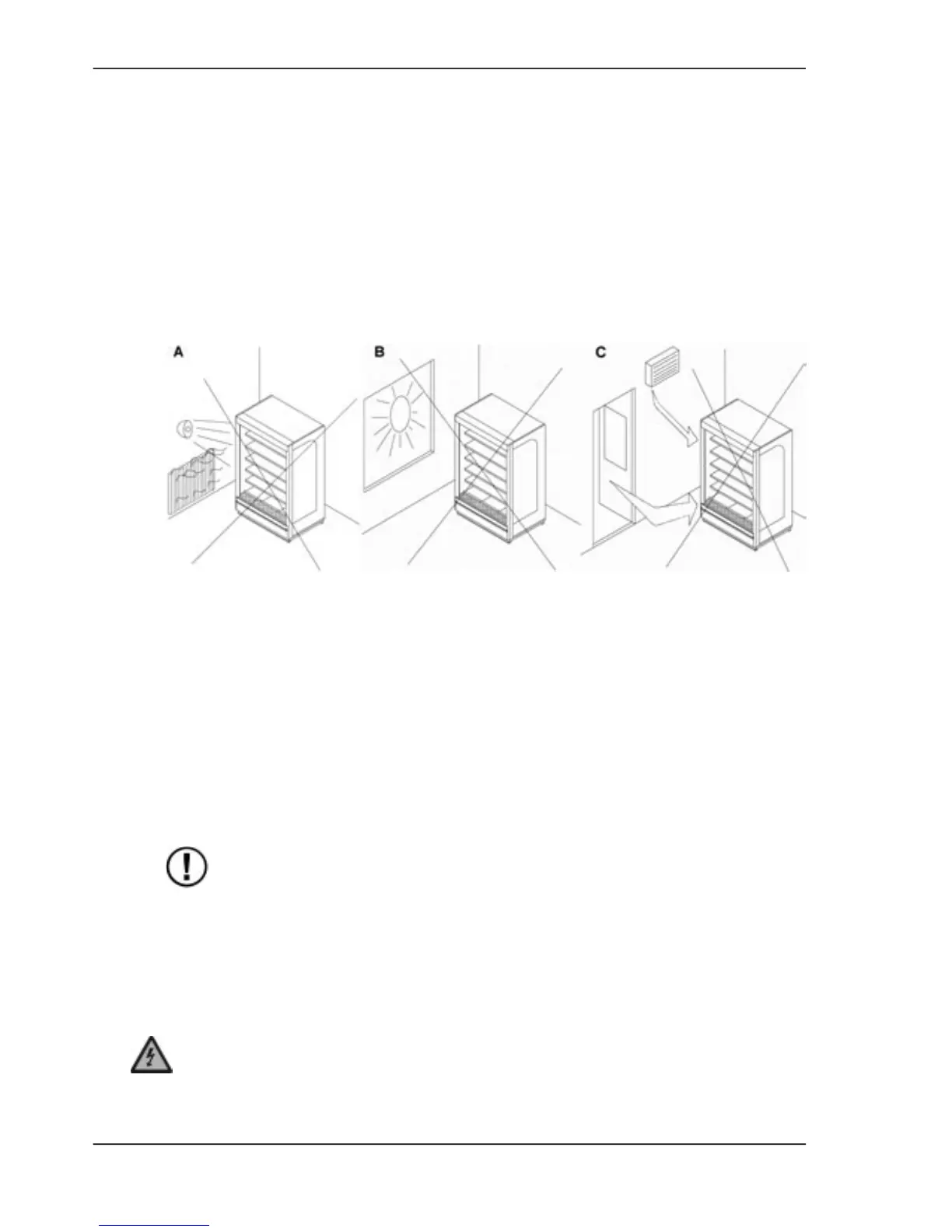• L'armoire n’est pas placée à proximité d’une source de chaleur telle qu’un radiateur,
