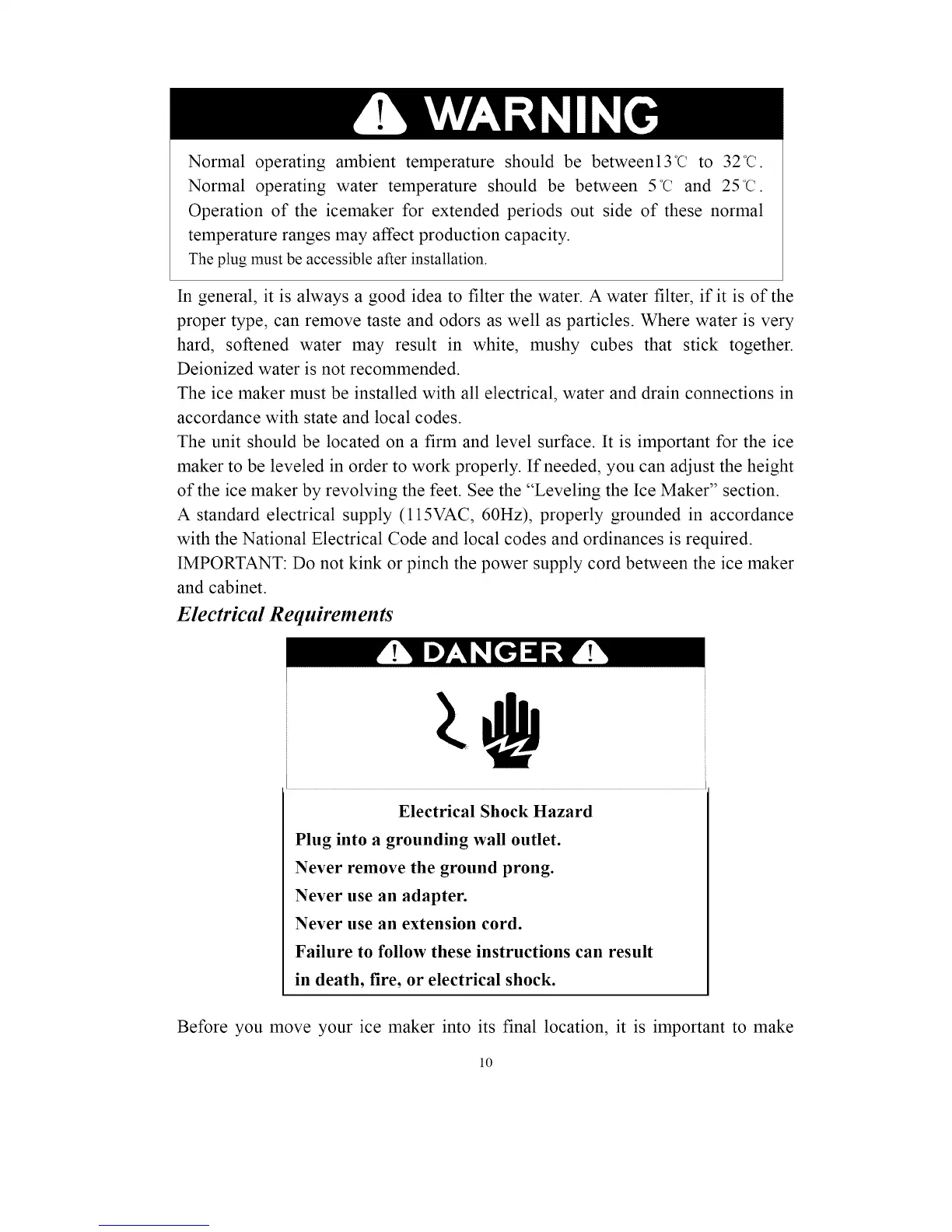 Before you move your ice maker into its final location, it is important to make