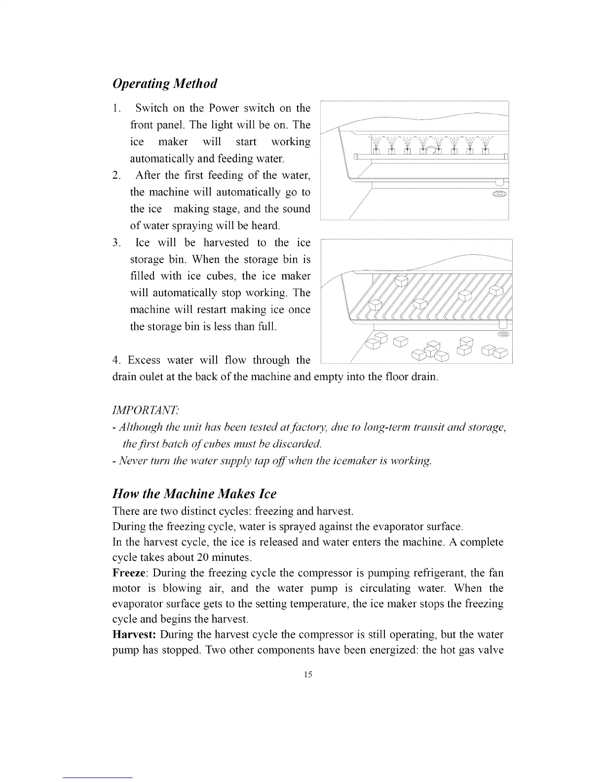 In the harvest cycle, the ice is released and water enters the machine. A complete