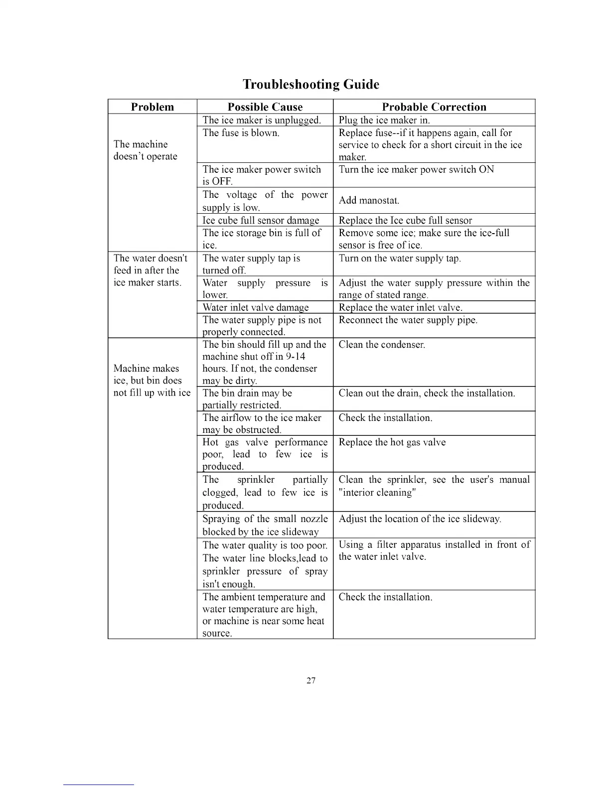 Remove some ice; make sure the ice-full