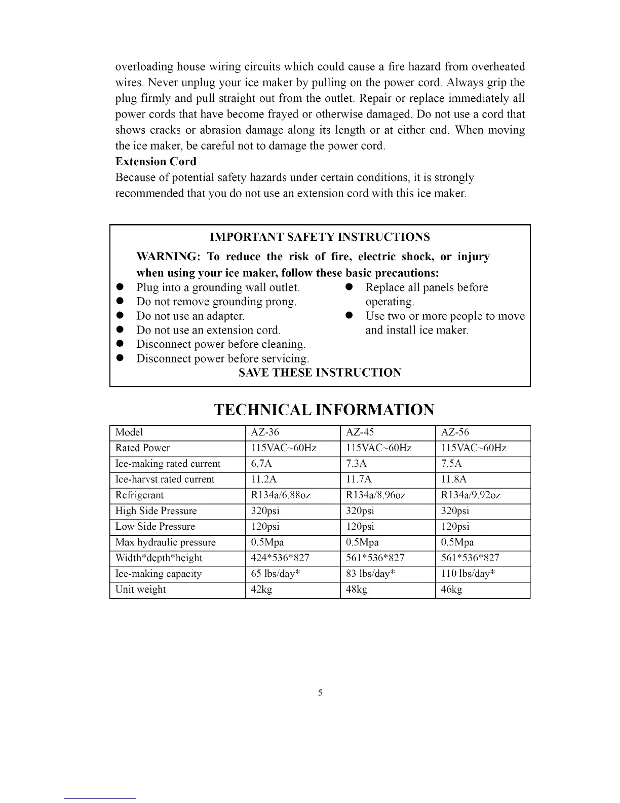 wires. Never unplug your ice maker by pulling on the power cord. Always grip the